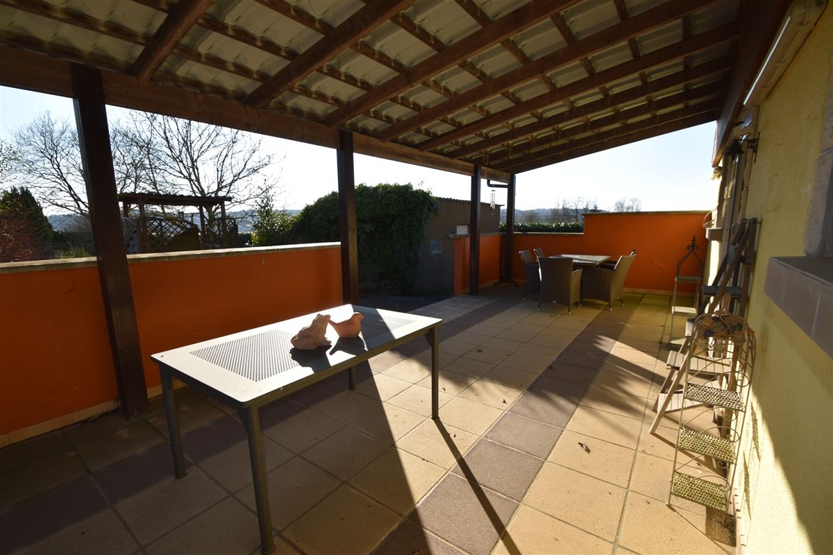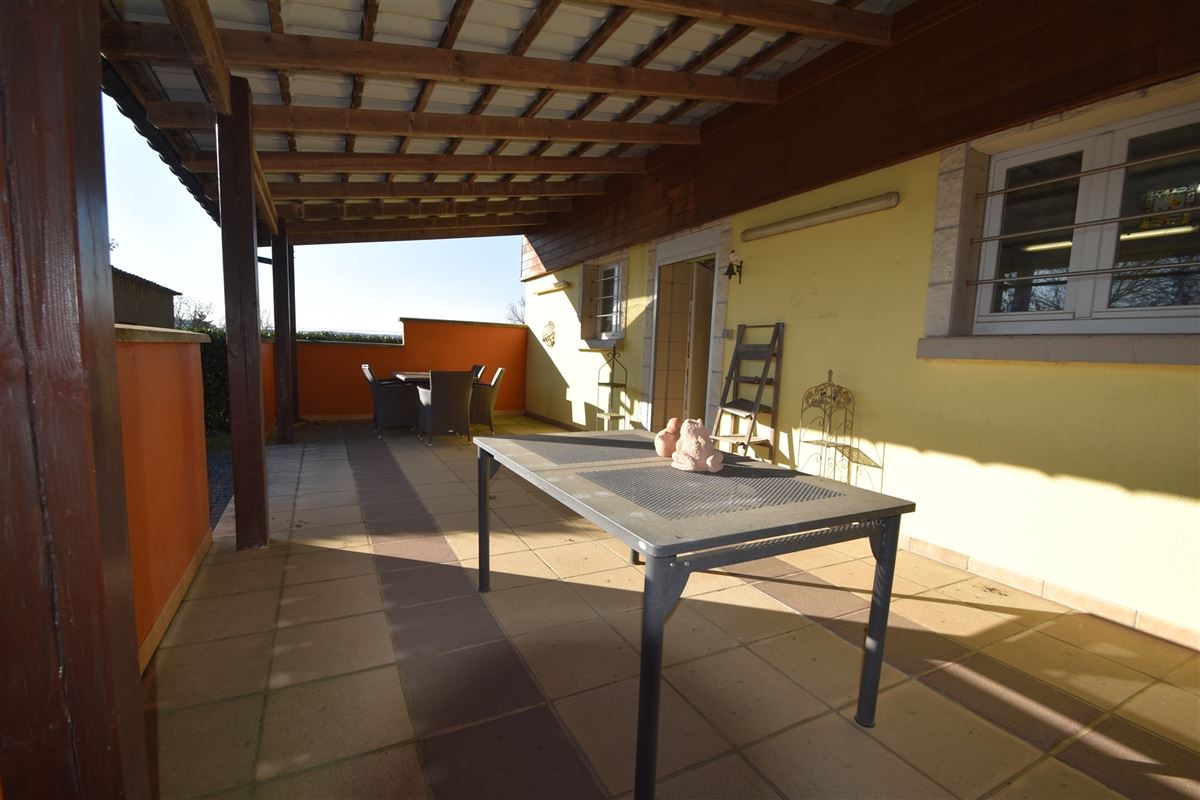 À l’extérieur, profitez d’un agréable jardin avec verger de +- 30 ares, d’une grande terrasse avec pergola ainsi que d’une dépendance.